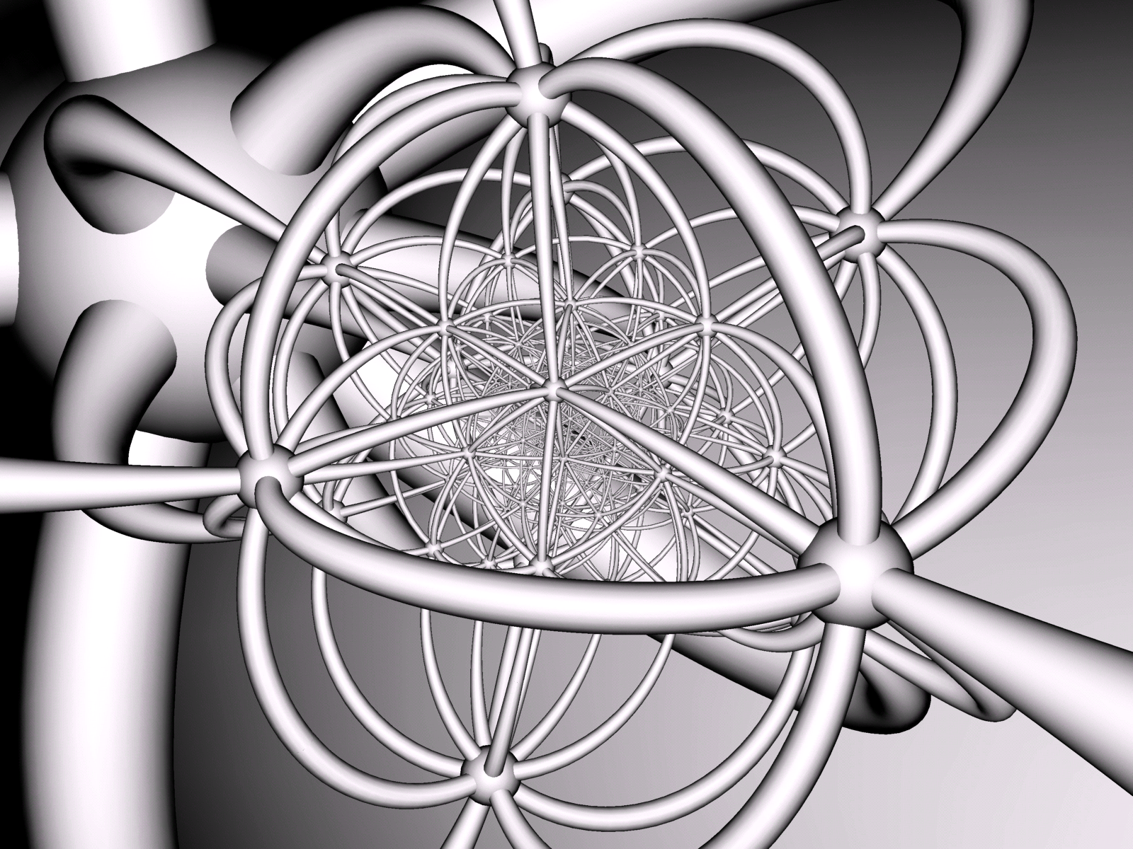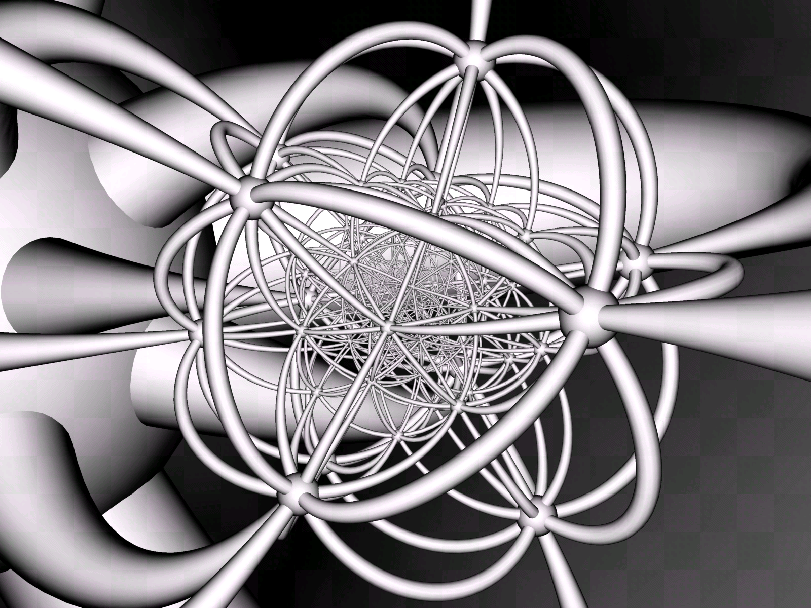 Jenn is a toy for playing with various quotients of Cayley graphs of finite Coxeter groups on four generators. Jenn builds the graphs using the Todd-Coxeter algorithm, embeds them into the 3-sphere, and stereographically projects them onto euclidean 3-space. (The models really live in the hypersphere so they looked curved in our flat space.) Jenn has some basic motion models governing the six degrees of freedom of rotation of the hypersphere.